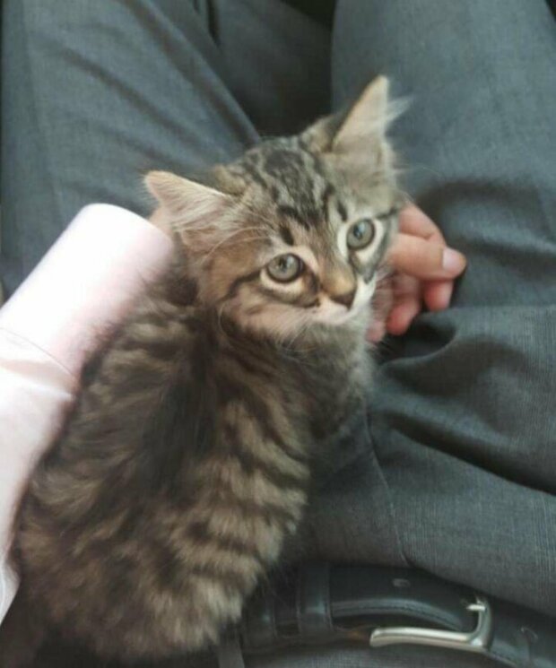 Kočka tiše zamručela a pak položila tlapku na mužovu ruku, jako by říkala: "Věřím ti, vezmi si mě." Muž a kočka si pohlédli do očí a vše pochopili.