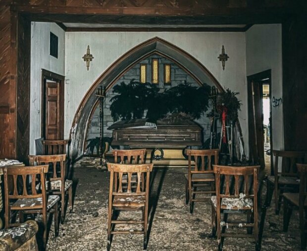 Tento chicagský pohřební ústav byl zřejmě opuštěn během pohřbu.