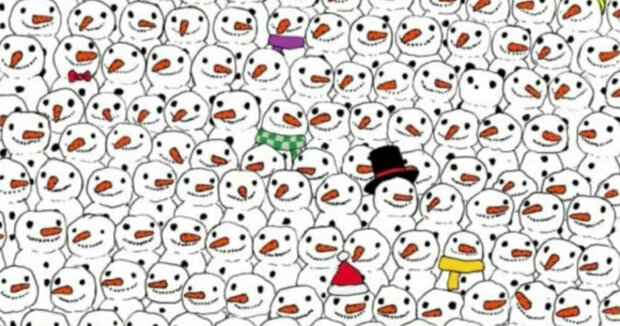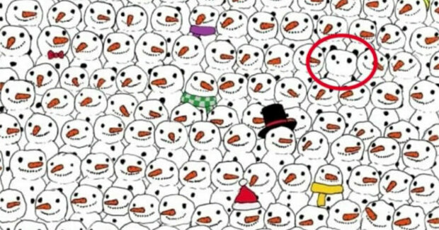 Úkolem je najít skrytou pandu na obrázku níže mezi celou skupinou usměvavých sněhuláků.