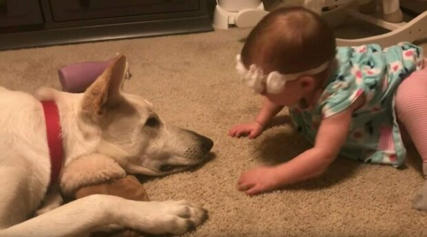 Informace uvedené na YouTube pod videem ukazují, že pes je starší než dívka jen o devět měsíců. Jakmile se dívka objevila doma, pes ji velmi miloval.