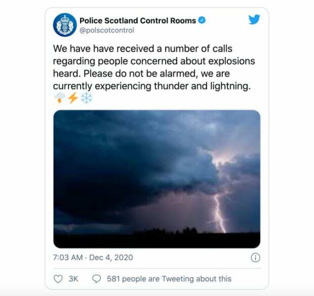 Jak se ukázalo, město zasáhla sněhová bouře. K tomuto jevu dochází, když se hromy a blesky mísí s hustým sněžením. Výboje se kombinují se sněhem, a proto existují silné hlasité rány, které lidi tak děsí.