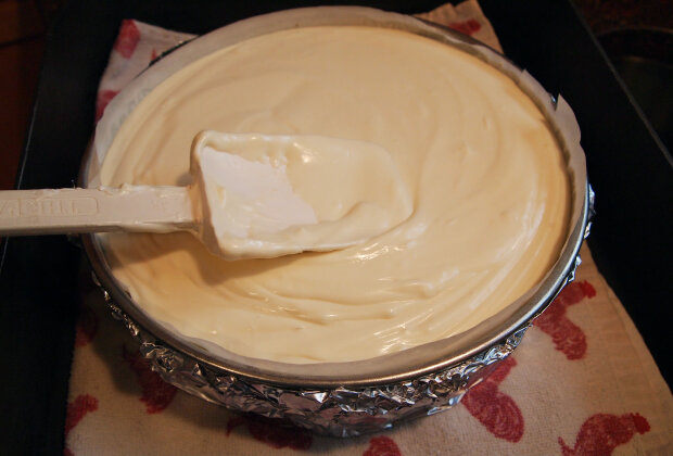 Těsto nalijte do formy vyložené papírem, vložte do předehřáté trouby na 180 stupňů a pečte asi 30 minut.