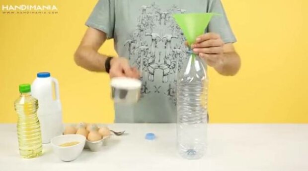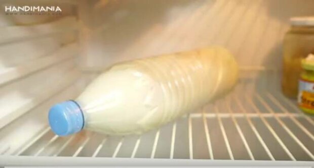 Pokud se ukáže, že těsto je zbytečně moc, můžete lahev snadno otočit a vložit do ledničky.