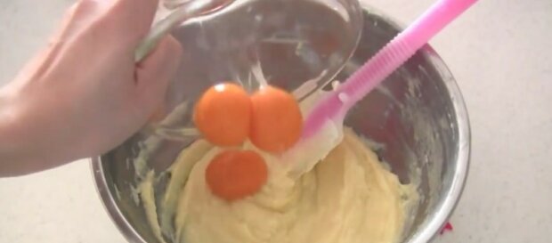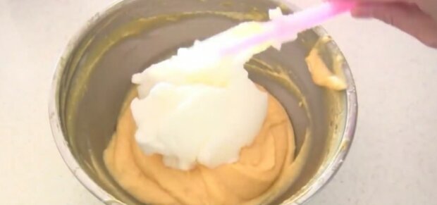 Bílky se přidávají do hmoty v malých dávkách a jemně se míchají.