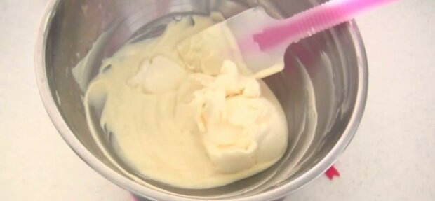 Do čokolády přidáme tvaroh a důkladně promícháme.