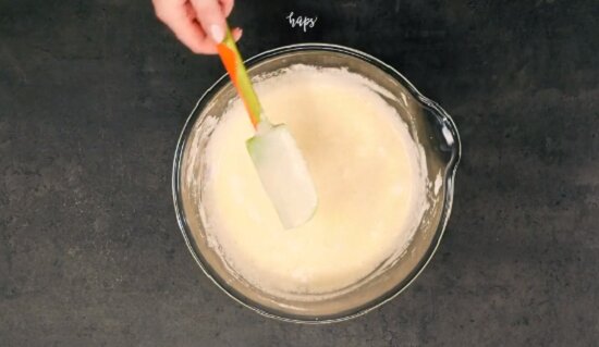 Tvaroh vložte do velké mísy a vymíchejte na hladkou hmotu. Přidejte kondenzované mléko a znovu promíchejte (ingredience se musí kombinovat). Nyní přidejte žloutky a promíchejte všechny ingredience.