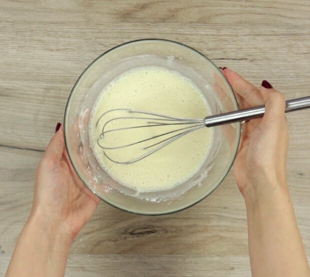 V misce dobře promíchejte 1 šálek mléka, pšeničné mouky, bramborové mouky a vaječného žloutku.