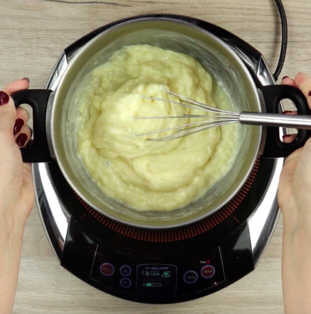 Zahřejte hrnec a poté do něj nalijte 1 šálek mléka. Přidejte cukr. Když se cukr rozpustí, postupně přidávejte předem připravenou směs za stálého míchání. Když se hmota vaří, vyjměte nádobu z tepla a nechte ji vychladnout.