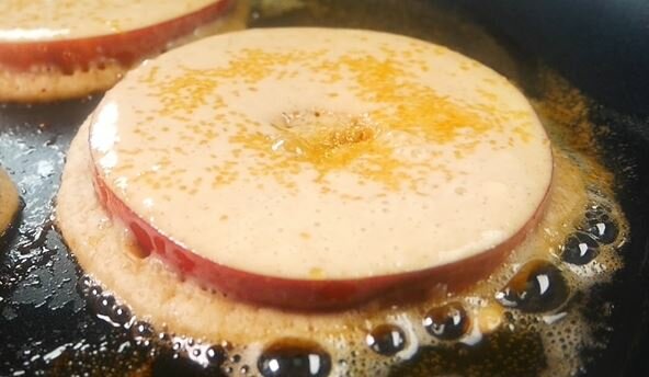 Pokud vás už nudí obyčejné placičky s nastrouhanými jablky, ušetříte si tímto receptem nějaký čas! Celá jablka smažená jako plátky jsou sladká, jemná a lehce křupavá, zachovávajíc si veškerou chuť. Jediné, co potřebujete, je vykrajovátko jablek, které najdete v každém velkém obchodě. Díky tomu stačí jeden tah, aby bylo možné jíst celé jablko.