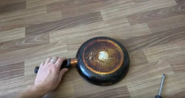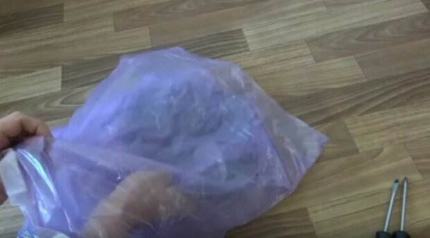 Pokud má pánev plastovou rukojeť, nejprve ji odšroubujte. V tomto případě vám pomůže obyčejný šroubovák. Rukojeť se čistí odděleně od tuku houbičkou (rovněž kovovou) za použití mycího prostředku a teplé vody. Pouze pánev bude vyčištěna od tuku "lidovou metodou". Vezměte 2-3 celofánové sáčky, ujistěte se, že jsou těsné, a pak je složte jeden do druhého.