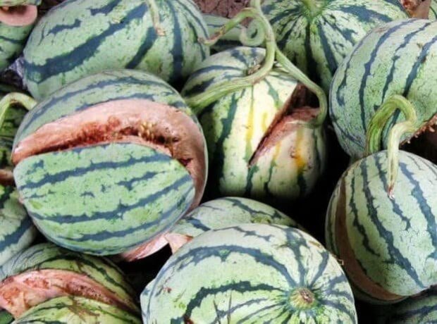 Samozřejmě, tak popraskaný meloun pravděpodobně nejde do obchodu, aby nevystrašil zákazníky. Trhlina uprostřed však může znamenat příliš mnoho chemické podpory pro pěstování melounu.