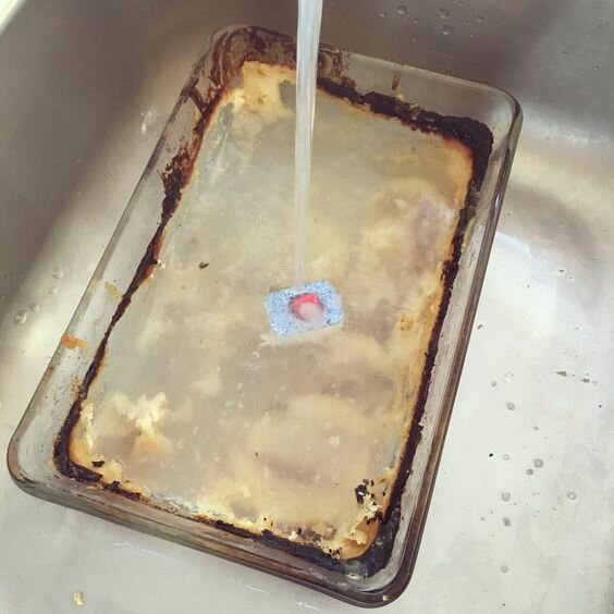 Patříte k lidem, kteří milují zapékané brambory nebo teplé lasagne? Při přípravě těchto jídel jsou naše tepelně odolná jídla velmi často spálena. Chcete-li se snadno zbavit nečistot, vložte do misky 1 tabletu myčky a naplňte ji teplou nebo horkou vodou. Nechte banku minimálně hodinu (pro lepší výsledky několik hodin nebo celou noc). Po uplynutí této doby se směs vylije a forma se propláchne horkou vodou.
