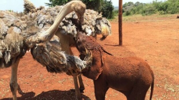 Současně byl do útulku přivezen pštros jménem Pea. Navzdory druhové odlišnosti zvířata rychle našla společnou řeč a spřátelila se.