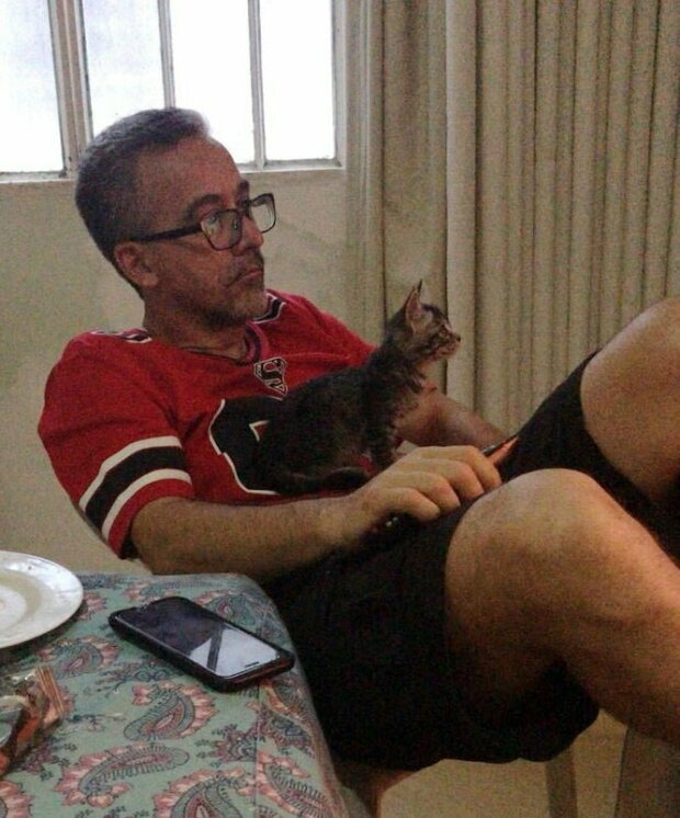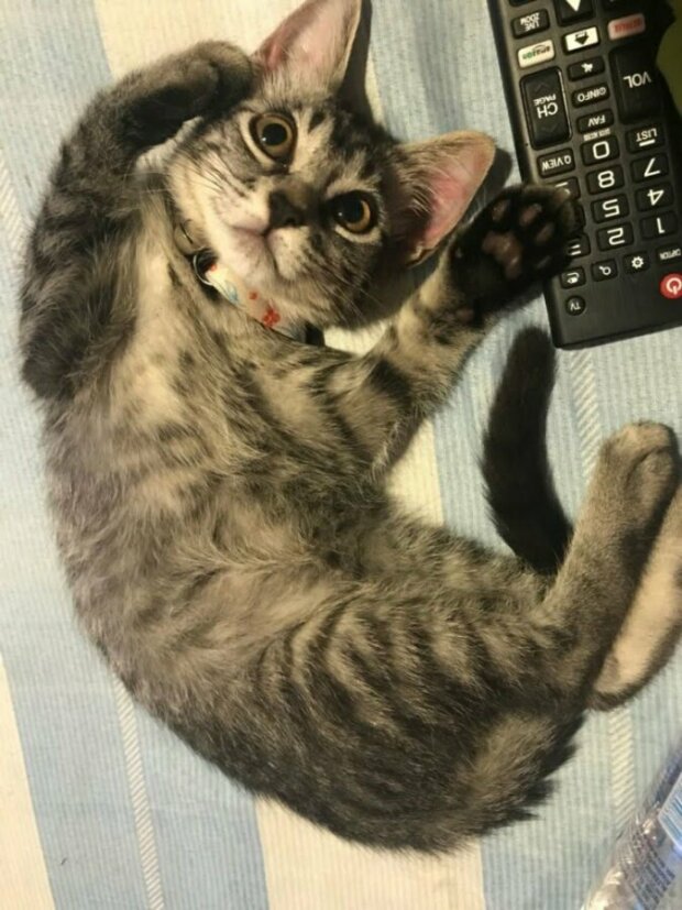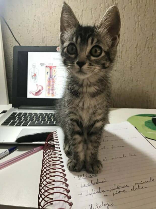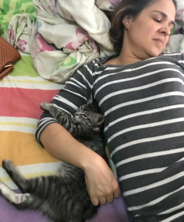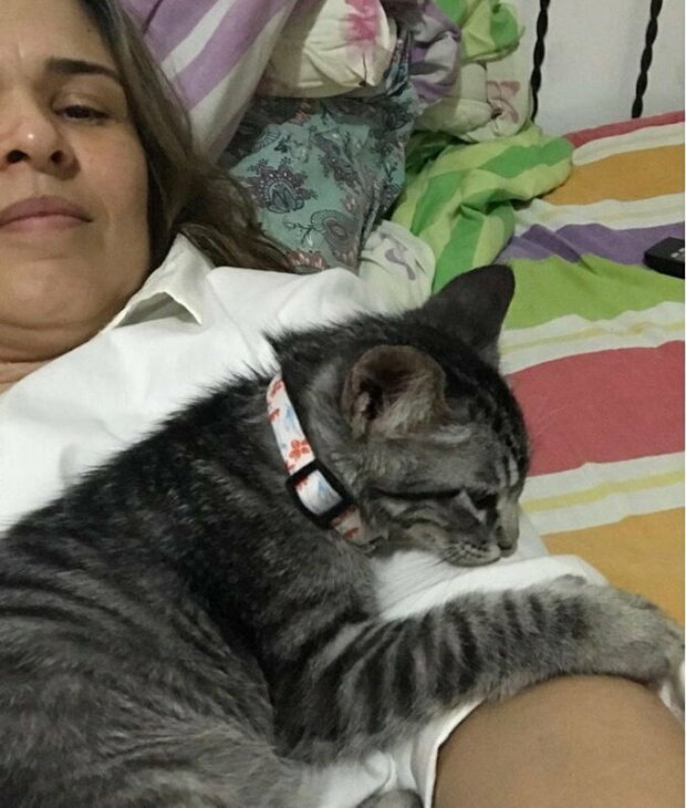 Jednoho dne uslyšela Brazilka Stephanie na dvorku hlasitě štěkat svého psa. Šla se podívat, co se děje, a u plotu uviděla malé žíhané kotě. Pršelo a chudák byl úplně promočený, zmrzlý a udýchaný zimou.
