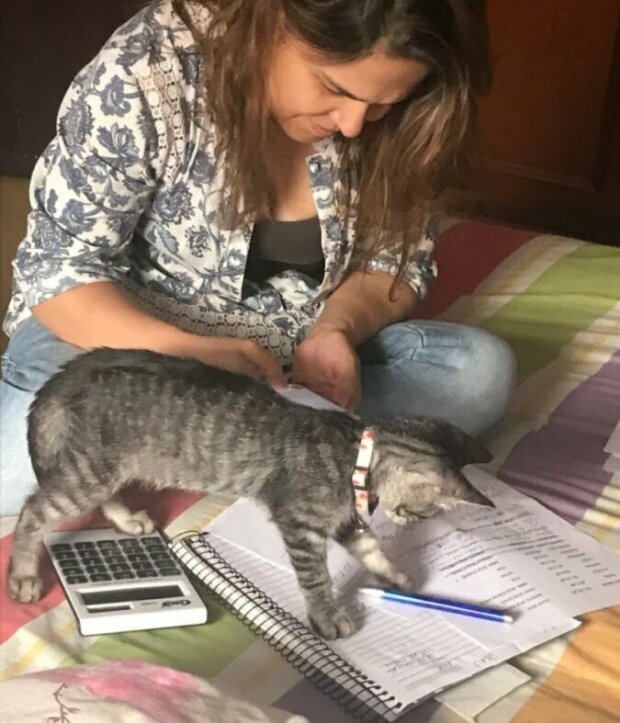 "Kočička je u nás už dva měsíce. Máma ji má tak ráda, že mi často posílá její veselé a roztomilé fotky, když jsem v práci."