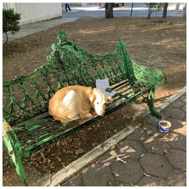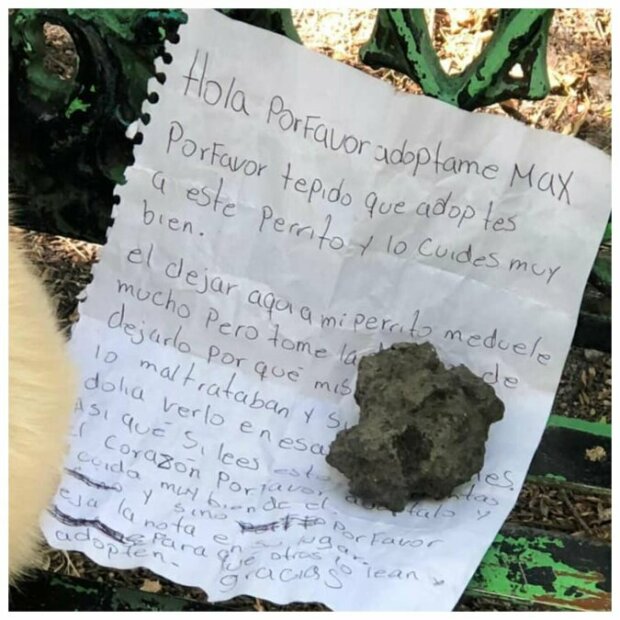Tento příběh se odehrál v Mexiku na konci listopadu 2020. V jednom z městských parků byl nalezen pes. Byl přivázaný vodítkem k lavičce a vedle něj ležel kus papíru. Kolemjdoucí byli velmi dojati tím, co viděli, zavolali do útulku "Mascotas Coyoacan" a požádali dobrovolníky, aby pomohli najít majitele psa. Obsah vzkazu se dal jen těžko přečíst: jakmile se k němu někdo z kolemjdoucích pokusil přiblížit, pes okamžitě začal hrozivě vrčet. Nikdo neriskoval, dokud nedorazili dobrovolníci. Byla tu naděje: možná majitel prostě neměl psa komu nechat, a tak se rozhodl na pár hodin odejít a vysvětlit svou nepřítomnost v dopise.
