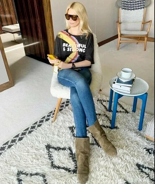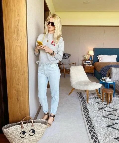 Schifferová má velmi ráda džíny, v jejím šatníku jsou různé modely. Hubené nohy jí umožňují nosit těsné modely.