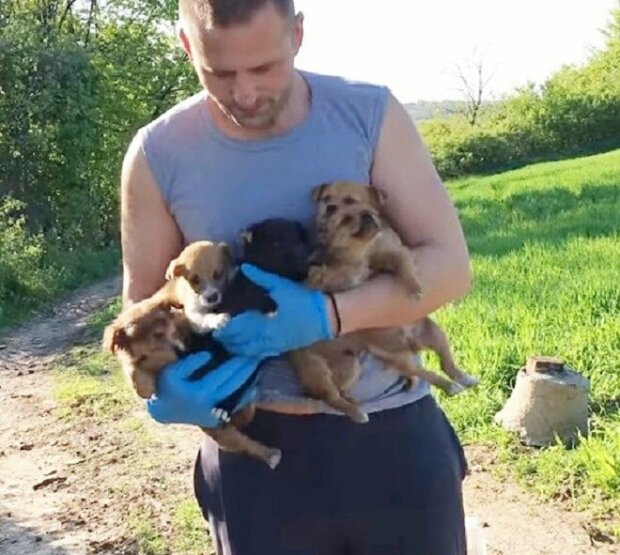 Když se děti najedly a uhasily žízeň, dobrovolník je opatrně vzal do rukou a odnesl do auta. Ukázalo se, že štěňat je celkem pět: čtyři fenky a jeden pes. Klidně se nechali odvést z lesní mýtiny a zcela pocítili lidskou laskavost.
