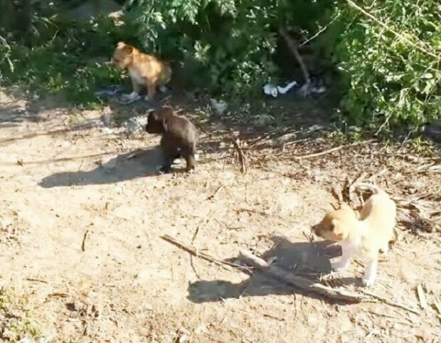 Když štěně uvidělo lidi, vyhlédlo ven a pak se náhle vrhlo ke křoví. A za chvíli odtamtud vyskočila další štěňata! Několik malých zvířátek pozdravilo lidi a radostně vrtělo ocásky. Zdálo se, že mláďata jsou krotká a vůbec se nebojí cizích lidí. Vypadalo to, jako by dlouho čekali, až je někdo co nejdříve vezme s sebou!