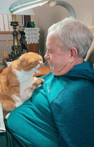 Kelly s sebou vzala svého věrného přítele, dvouletého kocoura jménem Sweet Potato, který v sobě náhle objevil terapeutický talent. Zvíře se od dívčina otce prakticky nehlo, jako by nemocnému pomáhalo vrněním.