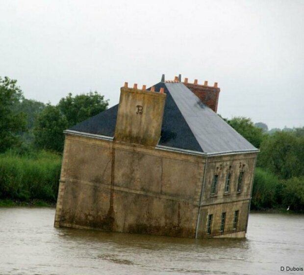 Z břehu francouzské řeky Laury nedaleko Nantes je vidět neobvyklý pohled: starý křivý dům ve vodě. Nezasvěceným by se mohlo zdát, že se na řece stala nějaká vážná tragédie, což pro Francii nebývá typické.