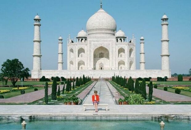 Fotografie na pozadí velkolepého Tádž Mahalu v roce 1992
