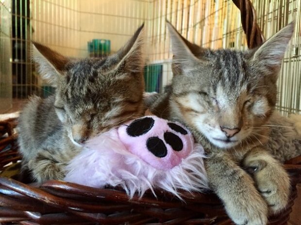 Kočky čekají na adopci, ale bohužel to není tak snadné ... Vzhledem k traumatickým zkušenostem musí být bratři adoptováni společně a pro mnoho koček je problém (a zdravý, a tyto děti jsou slepé). Prozatím se kočky učí žít podle matek a dvou pěstounských matek.
