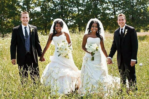 Ve stejný den se rozhodli udělat svatbu, všichni vypadali stejně, šaty pro nevěsty byly šity duplikátně, stejně jako boty a kytice. Sean a Eric byli také oblečeni ve stejných oblecích.