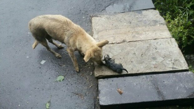 Několik lidí se pokusilo štěňata vytáhnout, ale nikdo se neodvážil jít do kanalizace, kde byla štěňata odplavena. Právě v tomto okamžiku prošla dívka Olga a chlapec Alexander. Jsou dobrovolníky a zvířata zachraňují již několik let.