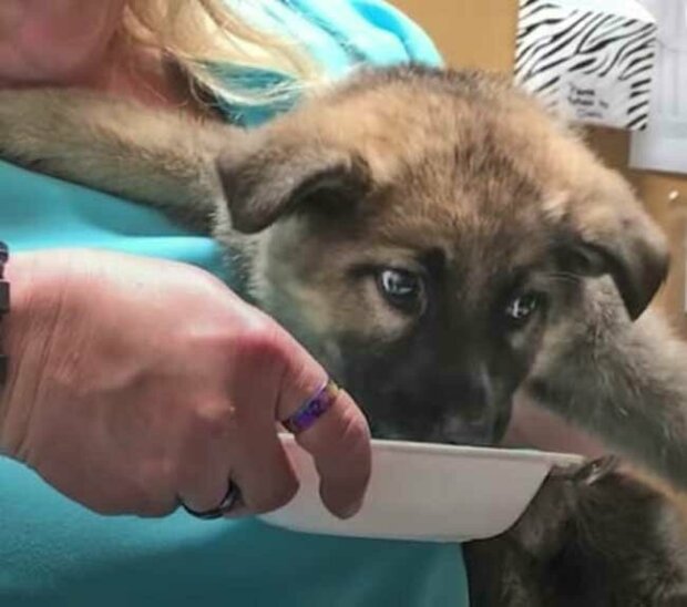 Muž, který jej našel, jej přivedl k veterináři, kde bylo rozhodnuto, že bude muset být uspáno. Veterinář to nechtěl, ale jeho stav byl příliš kritický. Nechtěli, aby jeho utrpení trvalo déle. Několik okamžiků před tím, než byl pes uspán, se šéf útulku podíval do místnosti a zasáhl. Chtěl se ujistit, že diagnóza je správná, a tak vzal štěně jinému veterináři. Po pečlivém vyšetření veterinář řekl, že pro tohoto psa stále existuje naděje.