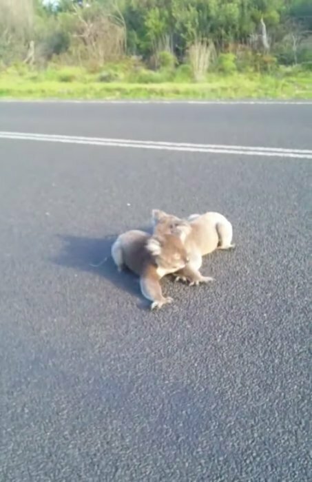 Po několika sekundách se koaly probraly ze zápalu boje a odešly.