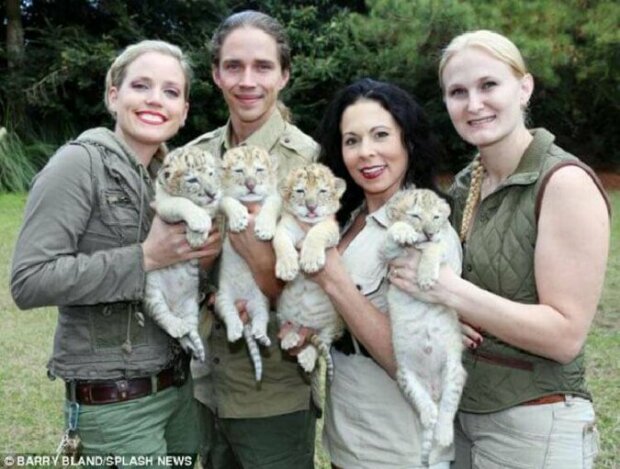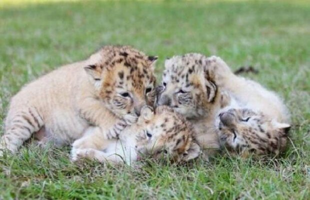 Lvi a tygři samozřejmě patří k různým plemenům „koček“, ale někdy si spolu mohou vytvořit dobrý vztah. A pokud se jedná o bílého lva a bílou tygřici, pak je pravděpodobnost, že se takový pár vůbec páří, a ještě více pak počne potomky, je prostě extrémně nízká. Na světě zbývá jen asi 1 200 bílých tygrů a 300 bílých lvů. Když se v roce 2014 pároval bílý lev jménem Ivory a bílý tygr jménem Saraswati, stalo se to nezapomenutelnou událostí.