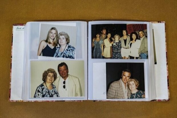 Zdá se, že se tato žena vyfotila jako suvenýr se všemi celebritami, o kterých psala nebo se s nimi setkala na slavných večírcích.