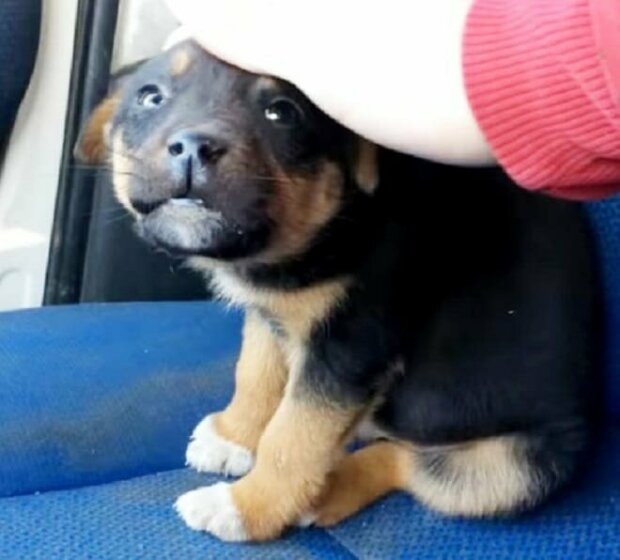 Když se dobrovolník pokusil štěně zvednout, malý mu to najednou dovolil a začal vrtět ocasem. Muž odnesl štěně do auta. Bylo vidět, že štěně bylo zmatené, ale když se mužova ruka jemně dotkla jeho malého těla, štěně si uvědomilo, že těmto lidem lze důvěřovat.