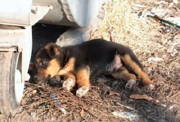 Nikdo nevěděl, jak dlouho tam zvíře je, ale bylo jasné, že štěně musí být zachráněno. Jeden z místních pečujících obyvatel zavolal do útulku, řekl o štěňátku, které našel, a požádal je, aby přišli. Mužovi bylo líto štěněte, které leželo osamoceně mezi odpadky.